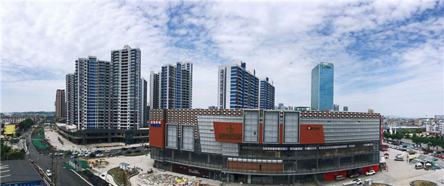 7、室外附屬:室外石材鋪裝完成,居然之家四層屋面鋪裝及綠化施工完畢。A、B區(qū)中間市政道路瀝青鋪設(shè)已完成。